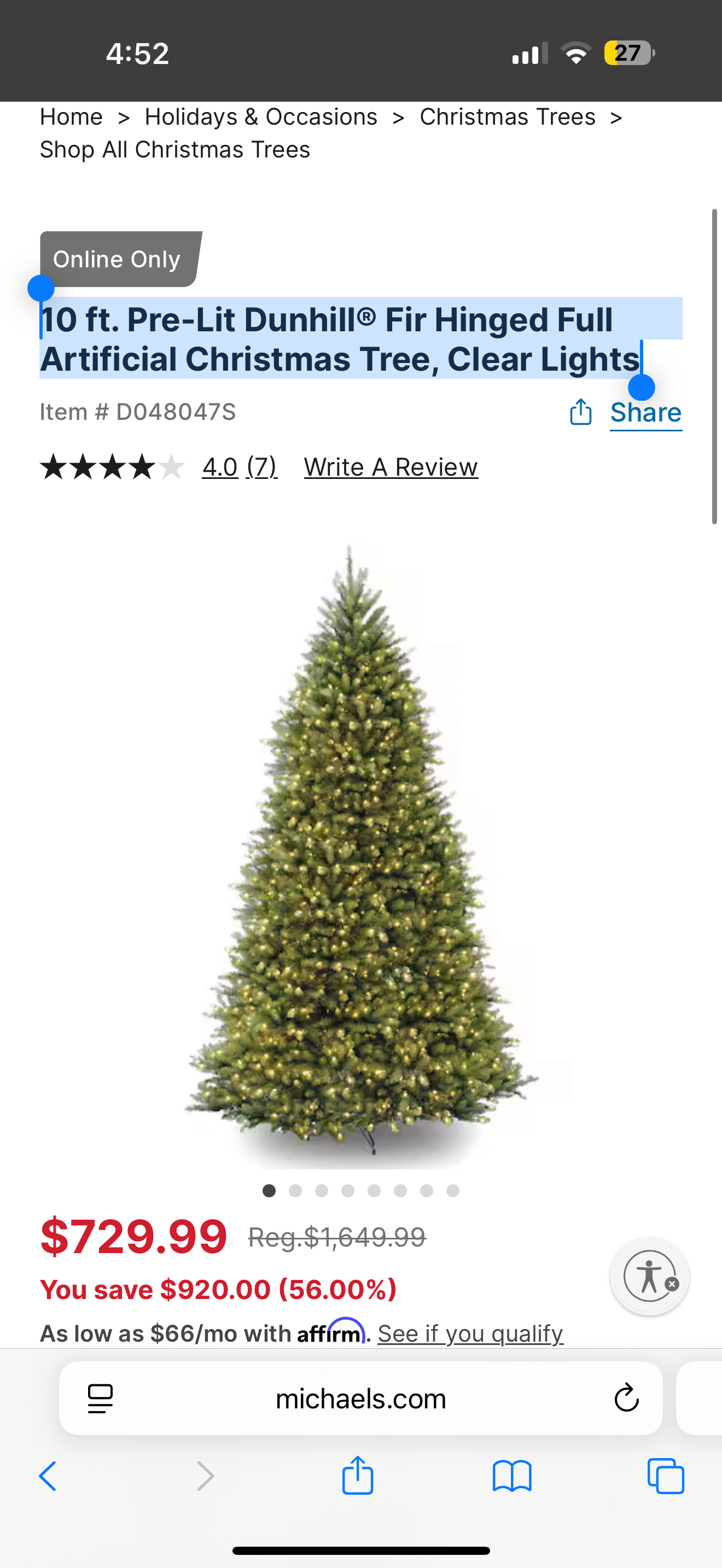10 ft. Pre-Lit Dunhill® Fir Hinged Full Artificial Christmas Tree, Clear Lights
